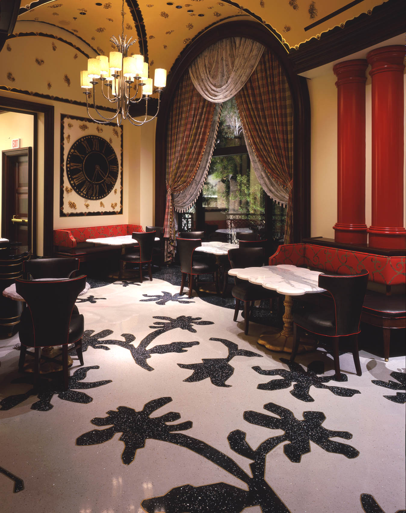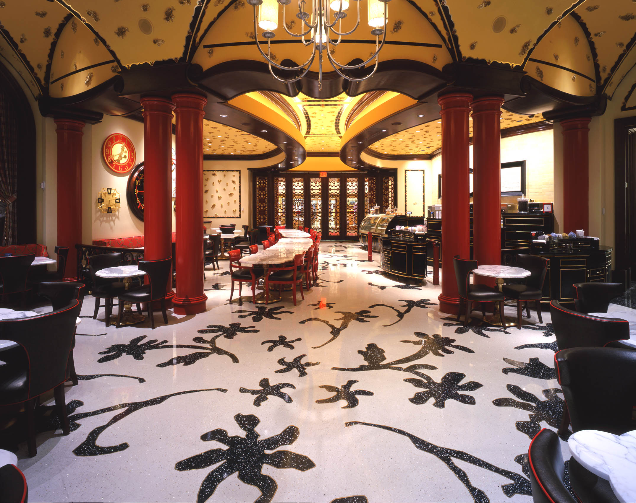 Completed in 2005, Arcon provided installer and design-assist services for custom terrazzo flooring at Sugar and Ice within Wynn Las Vegas. The installation featured two epoxy terrazzo mix designs—one light and one dark—laid out in an intricate pattern with brass metal inlays, creating a refined and elegant floor finish that complements the resort’s luxurious ambiance.